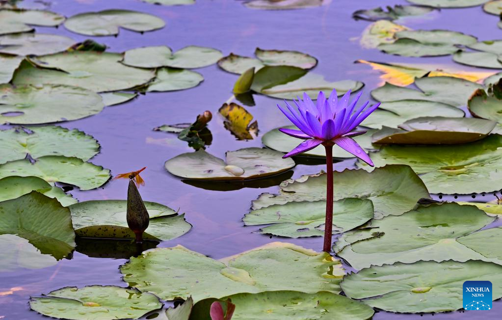 This photo taken on April 27, 2026 shows a water lily flower at Nanhu park in Nanning City, south China's Guangxi Zhuang Autonomous Region. (Photo by Miao Yucai/Xinhua)